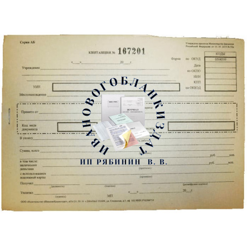 | Форма № | Квитанция (ОКУД 0504510). |